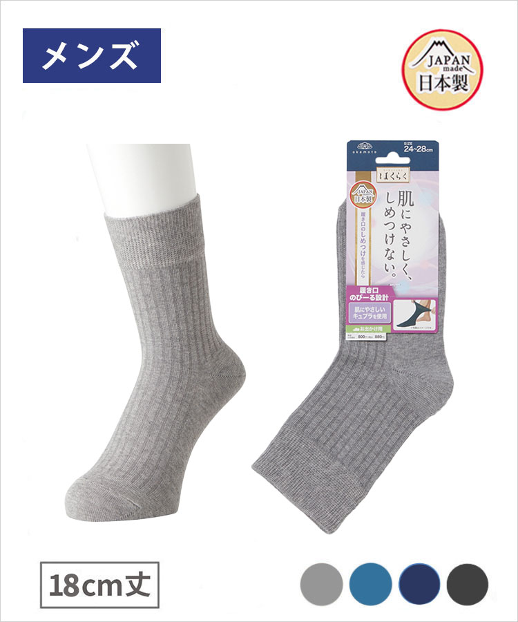 日本製「はくらく」ソックスは、肌にやさしく、しめつけない。