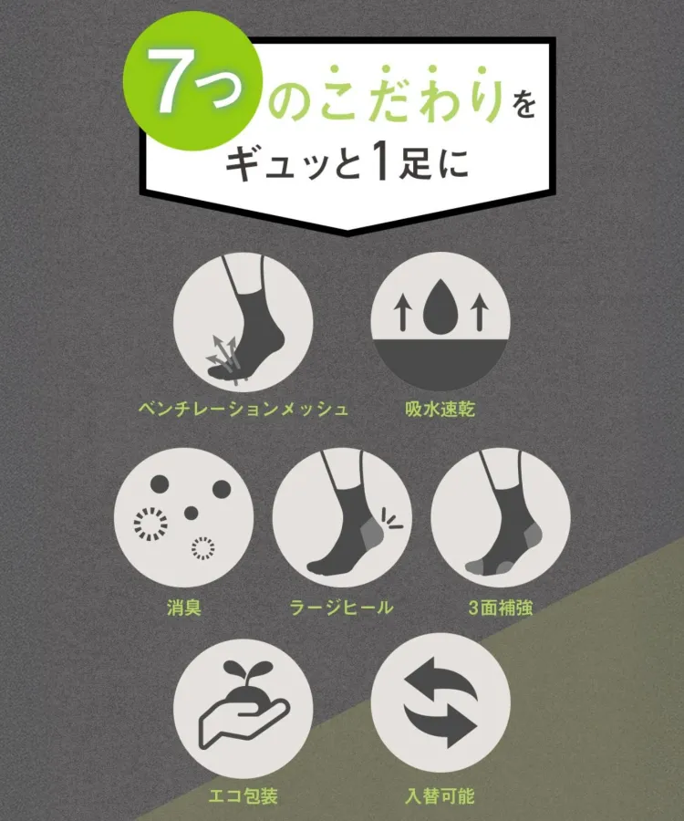 創業75年の国内靴下売上高No.1(※1)メーカーが監修。足もとのことを考えて本当に必要な機能だけをぎゅっと1足に詰め込みました。(※1)繊研2024年8月9日付 繊研新聞による