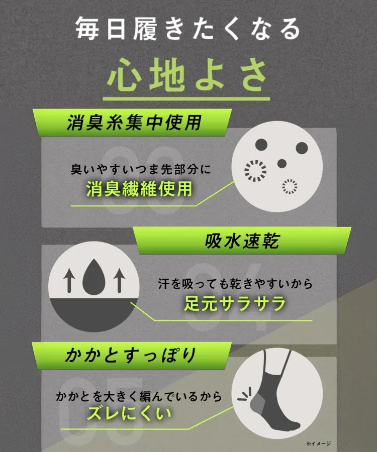 【集中消臭・吸水速乾・穴があきにくい】