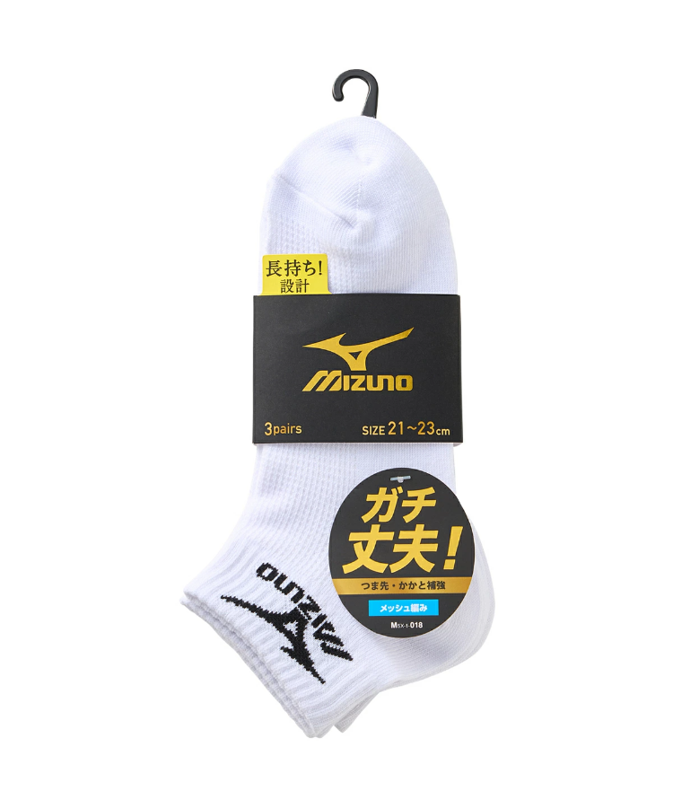 | 商品名 | 【3足組】MIZUNO キッズ ソックス くるぶし丈 長め 高耐久設計 甲メッシュ ミズノ デイリー ガチ丈夫 |