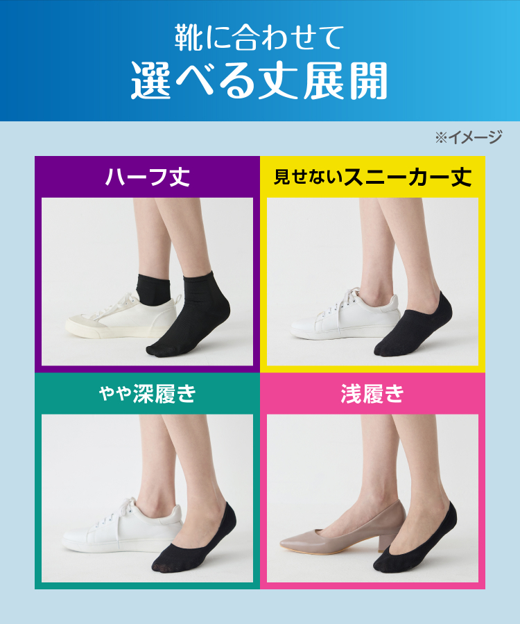 吸水速乾、消臭機能付きで足元をさらっと快適に。