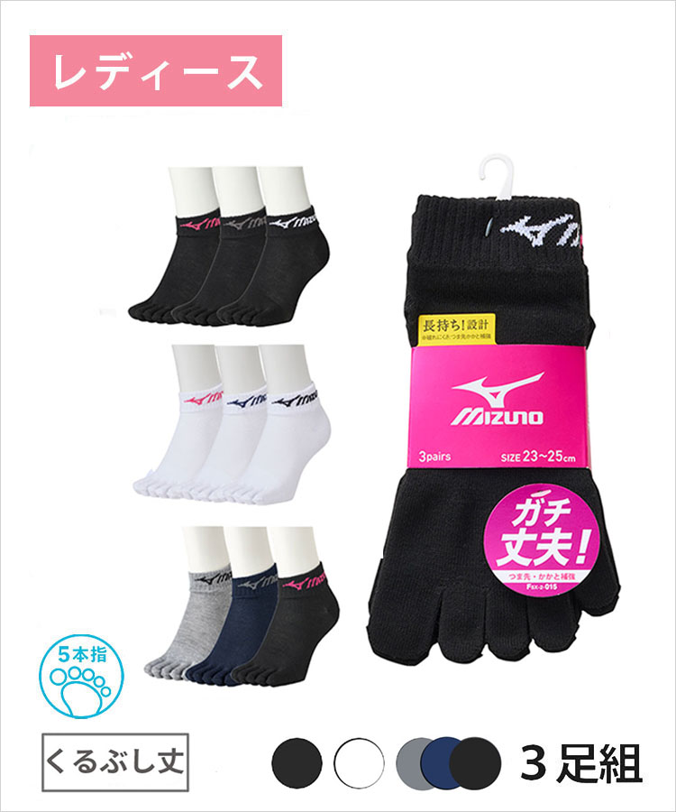 | 商品名 | 【3足組】MIZUNO レディース ソックス くるぶし丈 5本指 高耐久設計 ミズノ デイリー ガチ丈夫 |