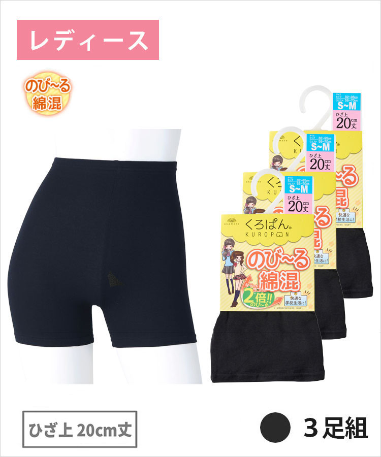 | 商品名 | 【3足組】くろぱん のび~る綿混 レディース ひざ上20cm丈 |