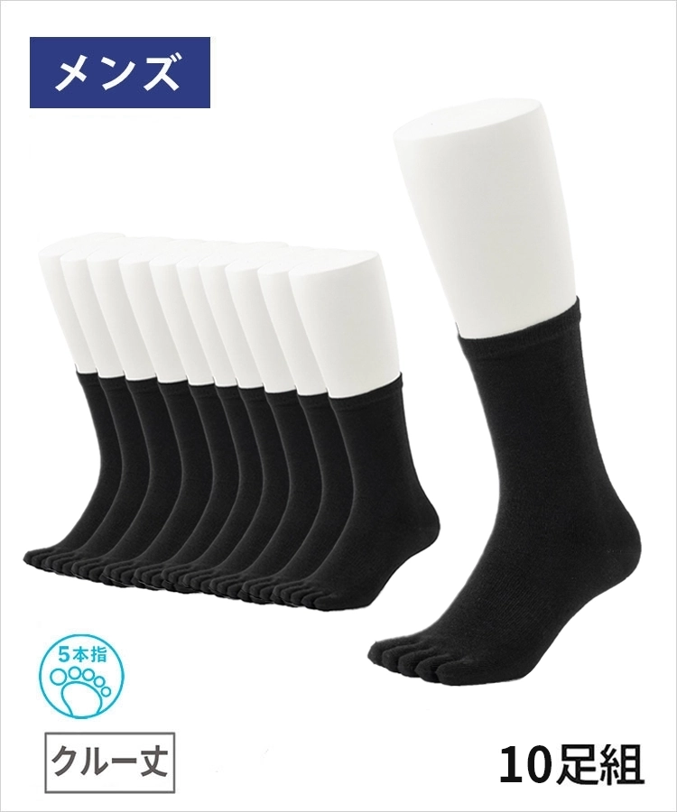【10足組】MAENI(マエニ) メンズ 5本指ソックス クルー丈 消臭糸使用 吸水 速乾 ラージヒール