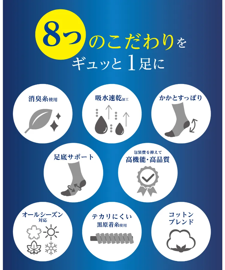 創業75年の国内靴下売上高No.1(※1)メーカーが監修。足もとのことを考えて本当に必要な機能だけをぎゅっと1足に詰め込みました。(※1)繊研2024年8月9日付 繊研新聞による