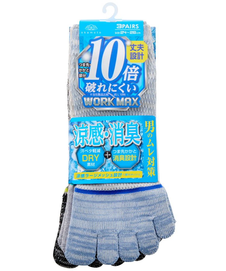 | 商品名 | 【3足組】WORK MAX 涼感メッシュ メンズ スニーカー丈 5本指 引揃 つま先ライン |