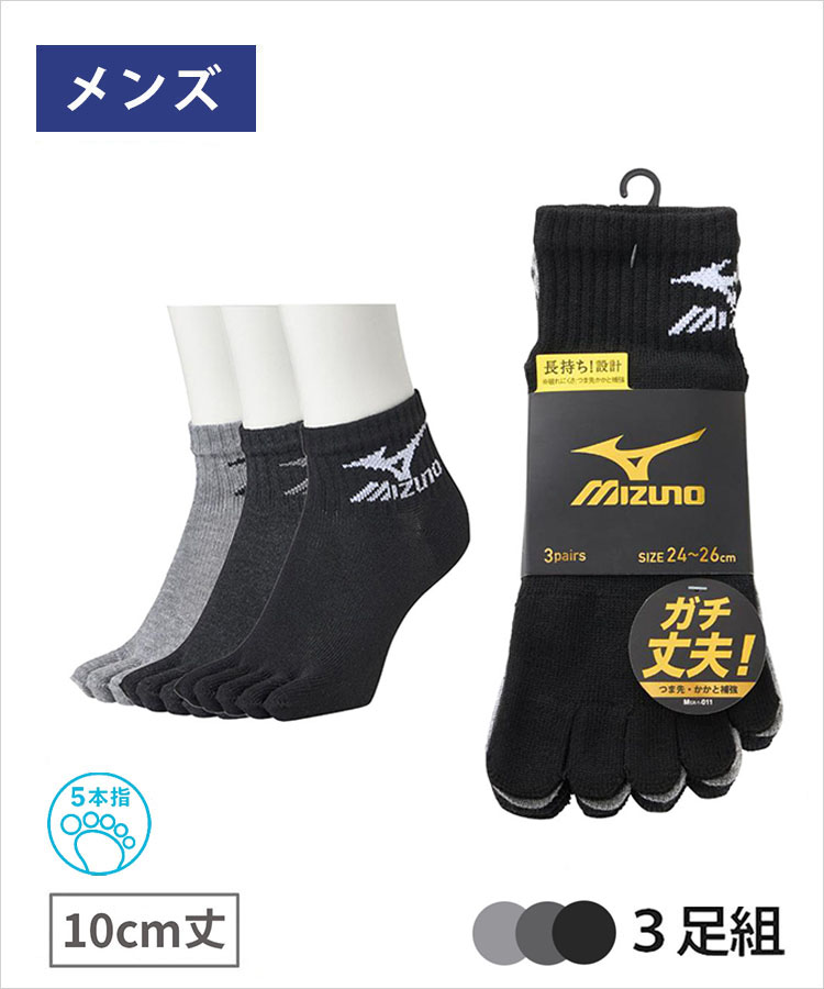 【3足組】MIZUNO メンズ ソックス 10cm丈 5本指 アソート ミズノ デイリー ガチ丈夫