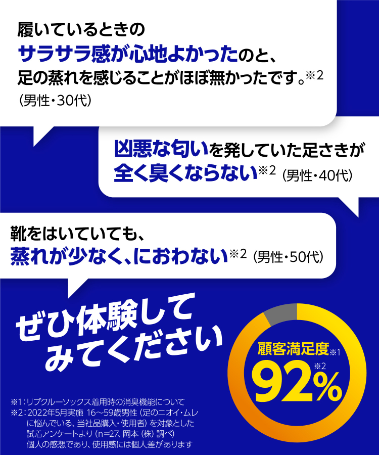 SUPER SOXは優れた吸放湿性と吸汗性でニオイの原因となるムレを解消します。