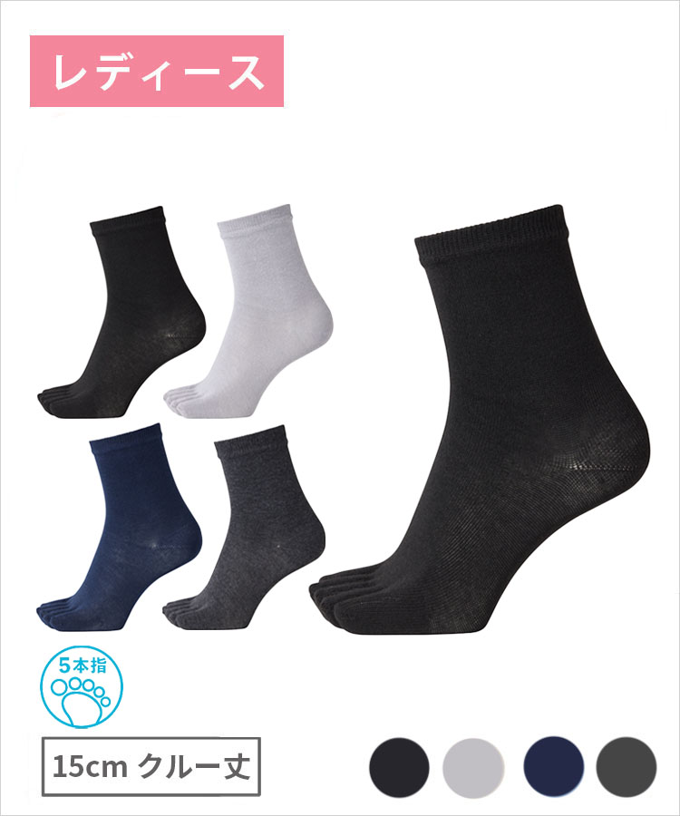 | 商品名 | moisok レディース 15cmクルー丈 5本指ソックス 無地 |