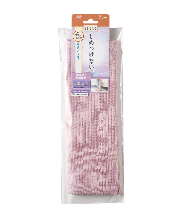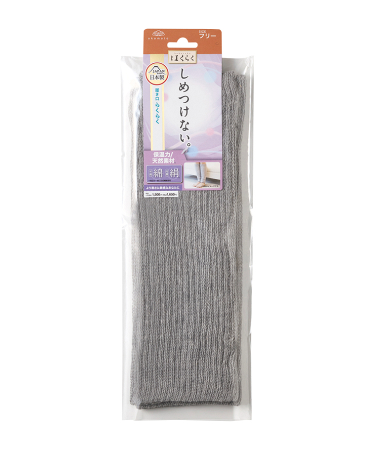 日本製 はくらく しめつけないレッグウォーマーは、肌に触れる内側に絹、外側に綿を使用しました。