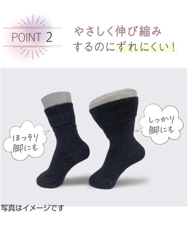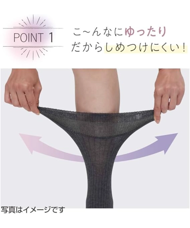 ぐーんと伸びて、やさしく戻るからゆったりとした履き心地でずれにくく快適です。