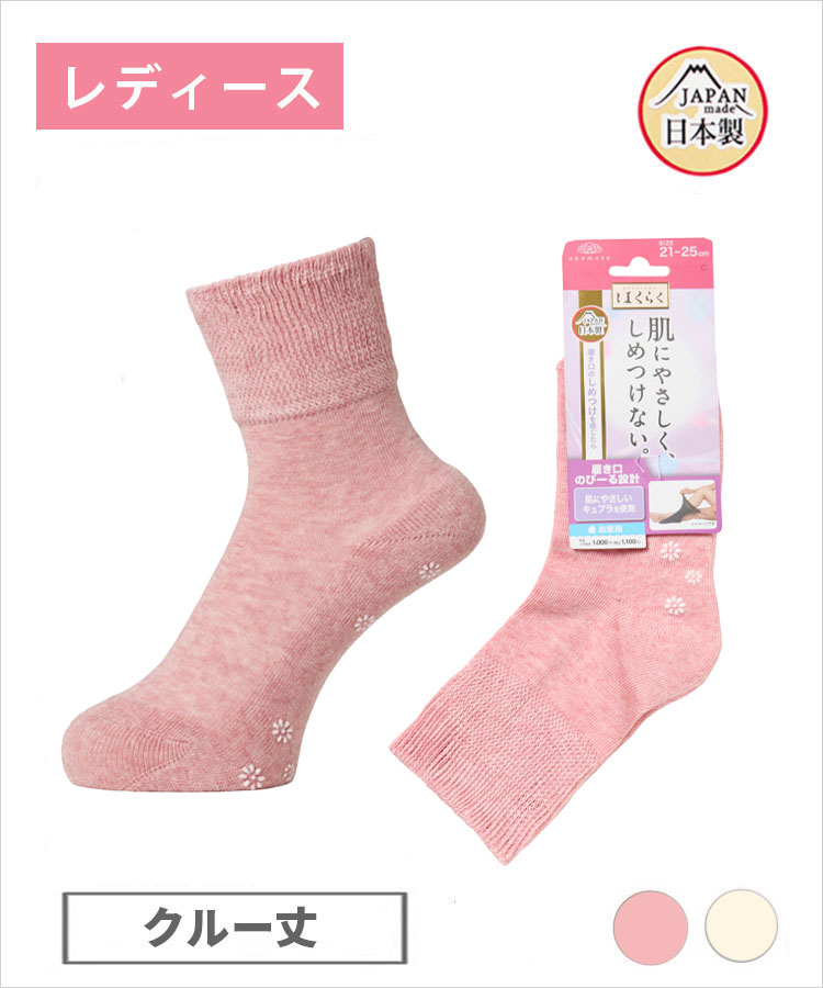 | 商品名 | はくらく レディース クルー丈ソックス 履き口のびーる 底パイル 滑り止め付 無地(お家用) |