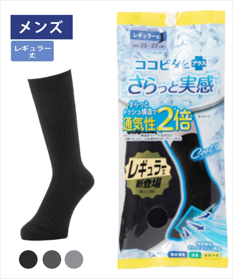 | 商品名 | ココピタ さらっと実感 メンズ レギュラー丈(クルー丈)無地 |