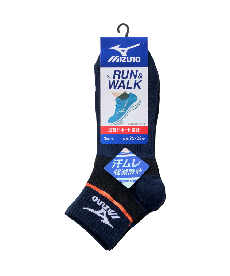 【3足組】MIZUNO メンズソックス RUN&WALK 10cm丈 甲メッシュ サポート グラデーションライン ミズノ