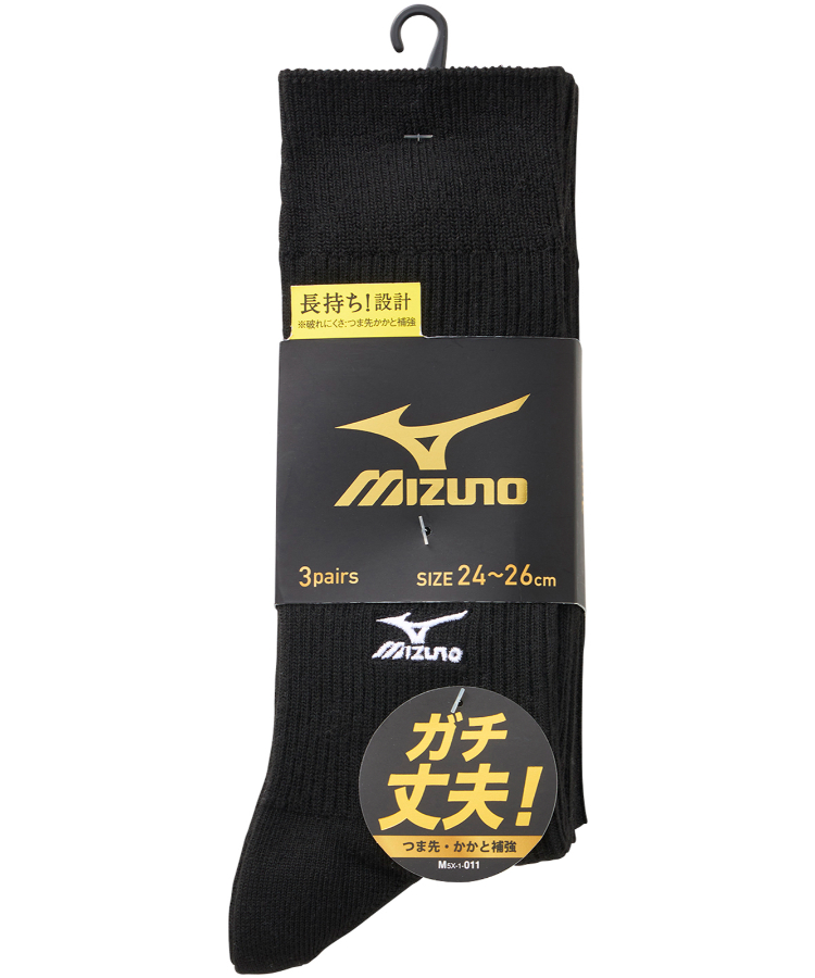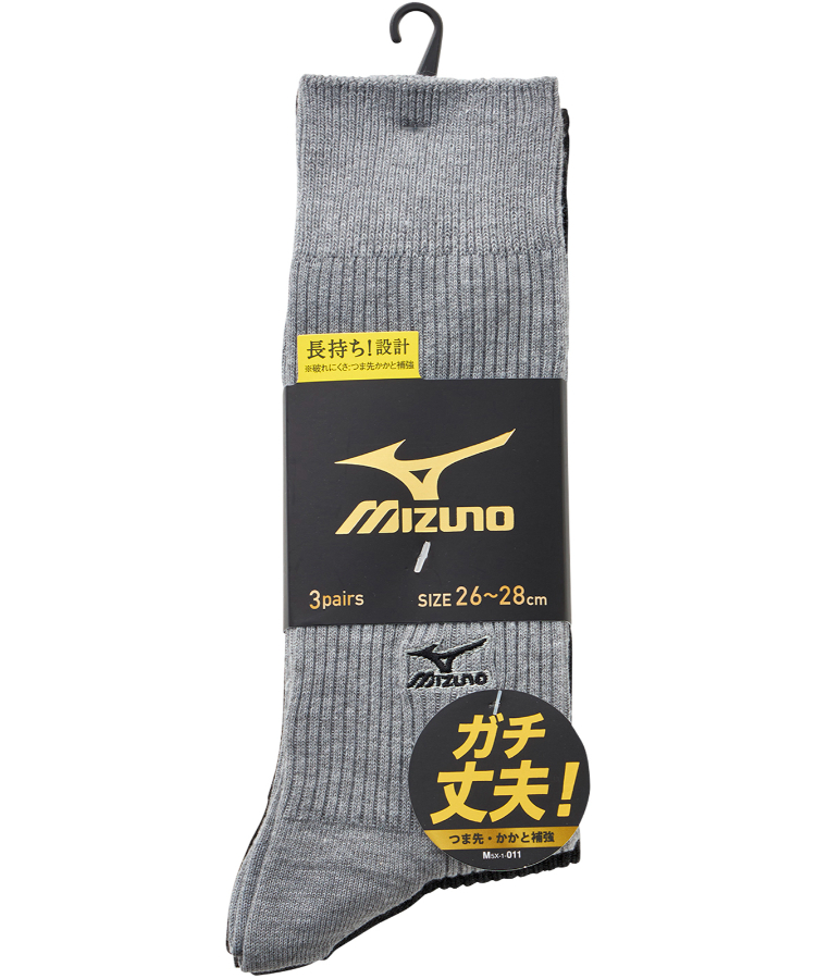 【3足組】MIZUNO メンズ ソックス クルー丈 リブ 刺繍 ミズノ デイリー ガチ丈夫