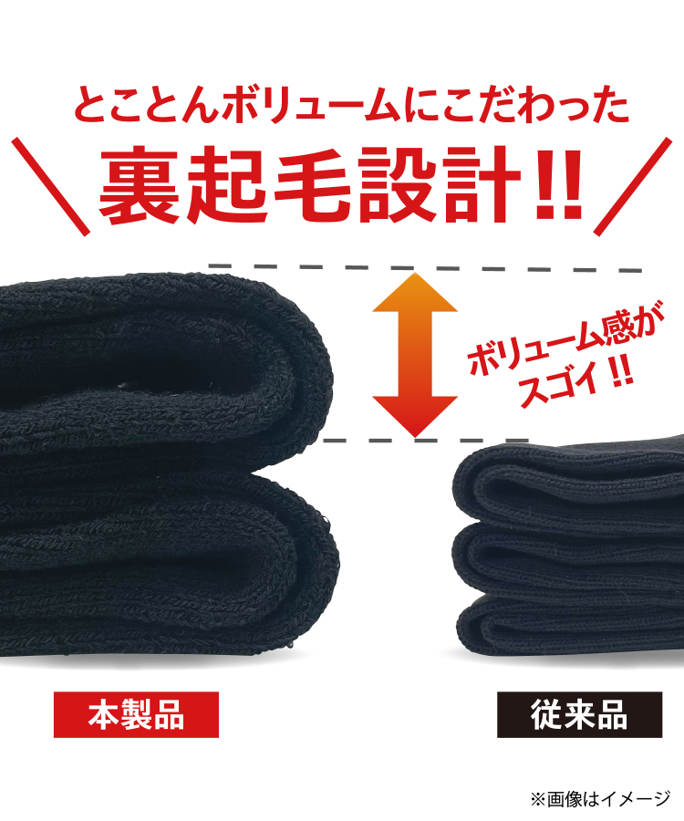 とことんボリュームにこだわった裏起毛設計。