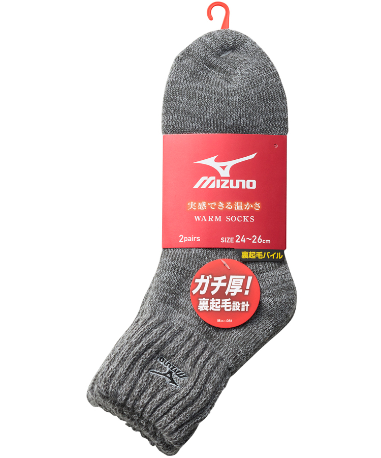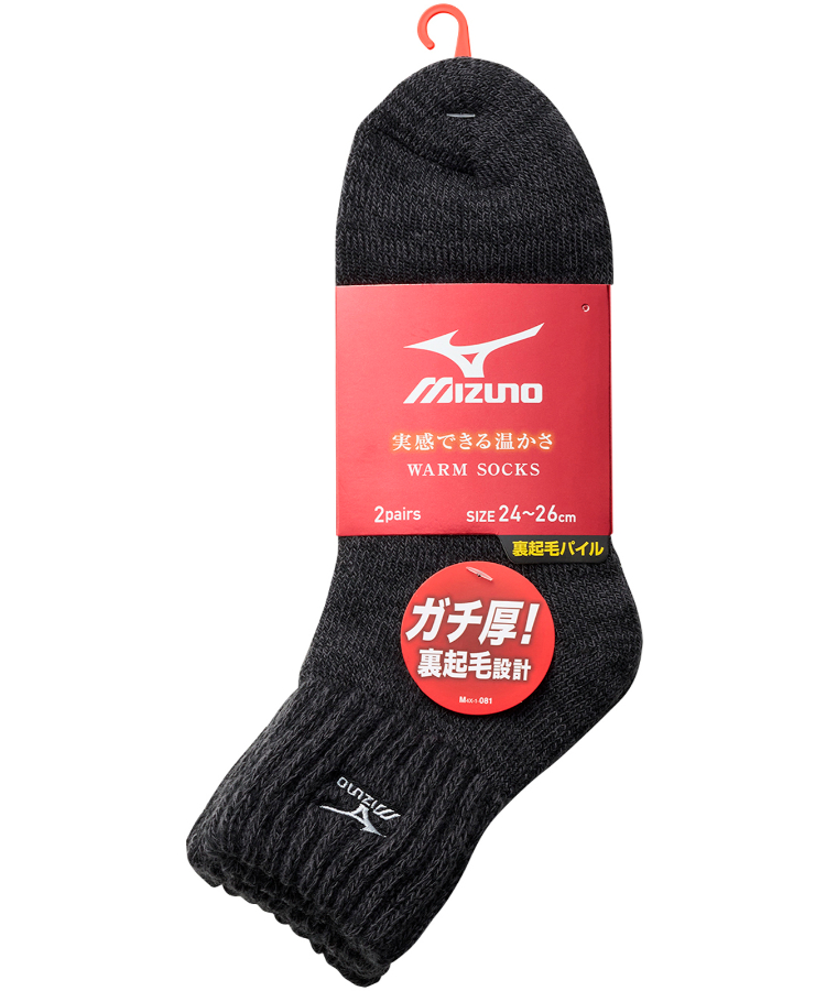 【2足組】MIZUNO デイリー ガチ厚 メンズ 12cm丈 フートパイル裏起毛 ロゴ刺繍 ミズノ