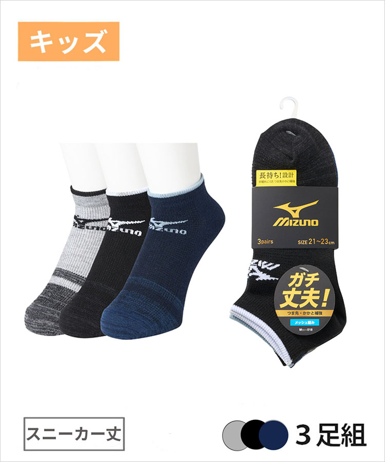 【3足組】MIZUNO キッズ スニーカー丈 引揃切替甲メッシュ アソート ミズノ デイリー ガチ丈夫