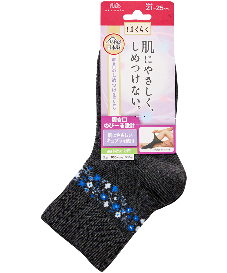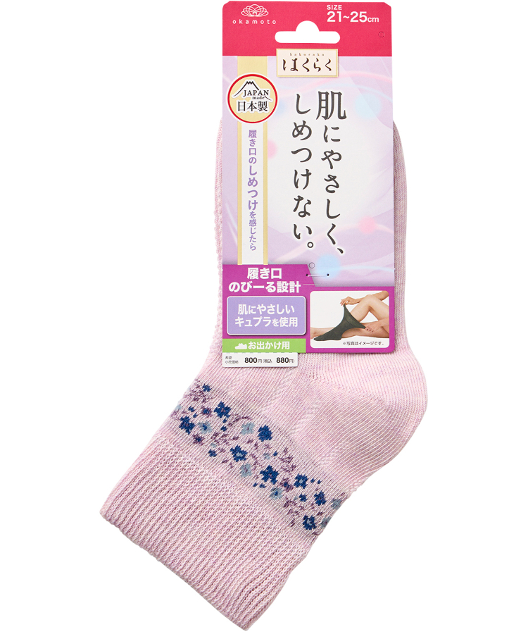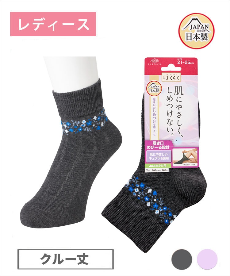 | 商品名 | はくらく しめつけない レディース クルー丈 のびーる 足首花柄 お出かけ用 (年間) |