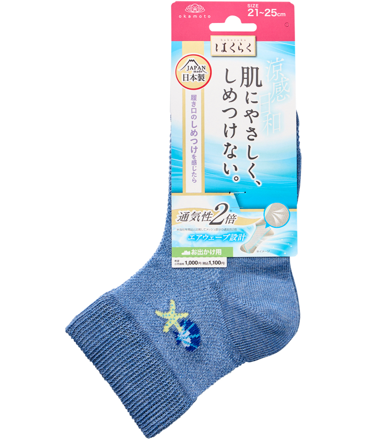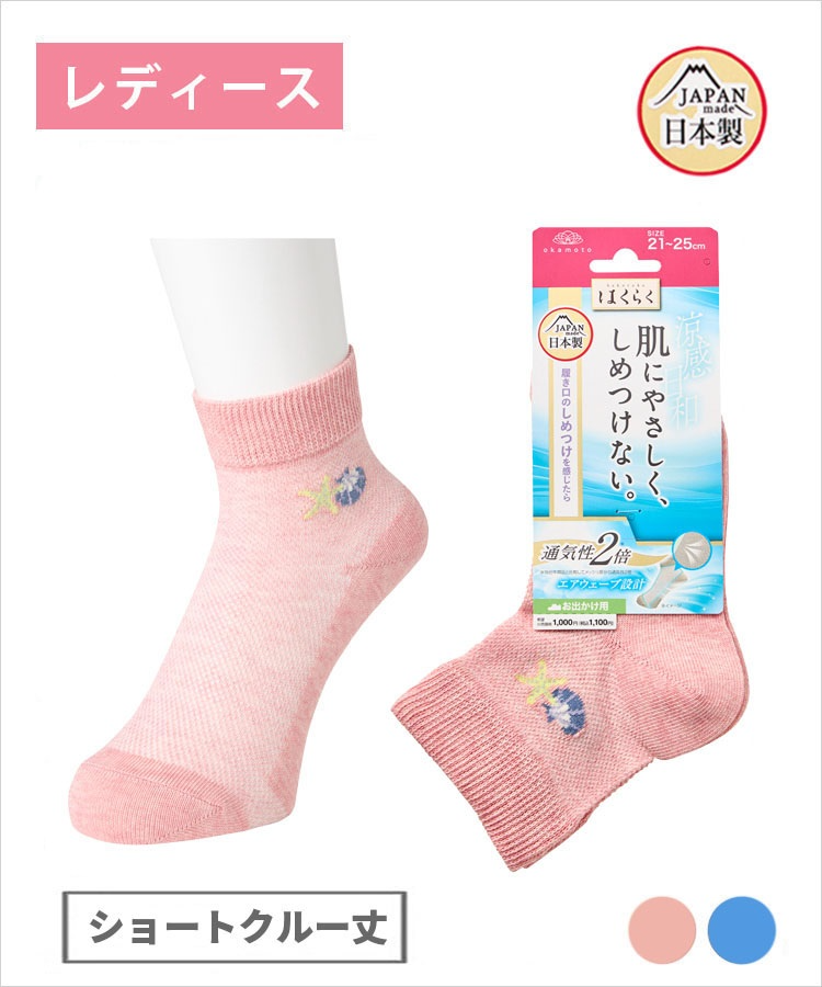 | 商品名 | はくらく しめつけない レディース ショートクルー丈 のびーる ワンポイントマリン柄 お出かけ用 (涼感) |