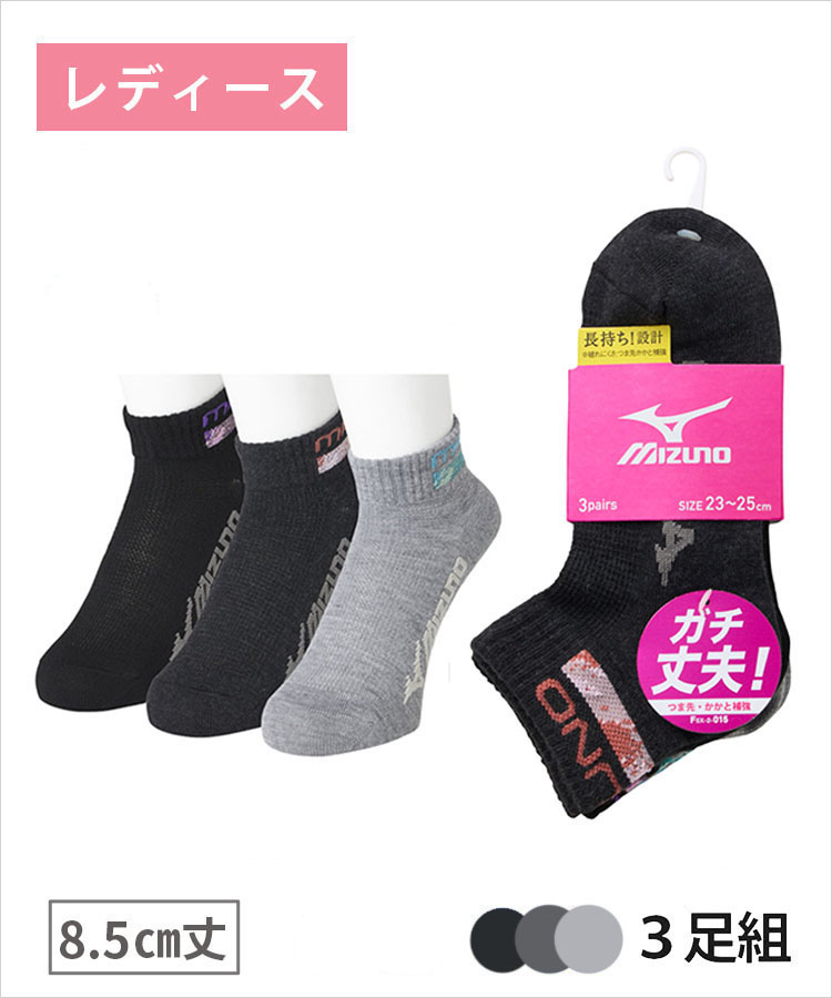 【3足組】MIZUNO レディース ソックス 8.5cm丈 甲メッシュ 口ゴムグラデーション アソート ミズノ デイリー ガチ丈夫