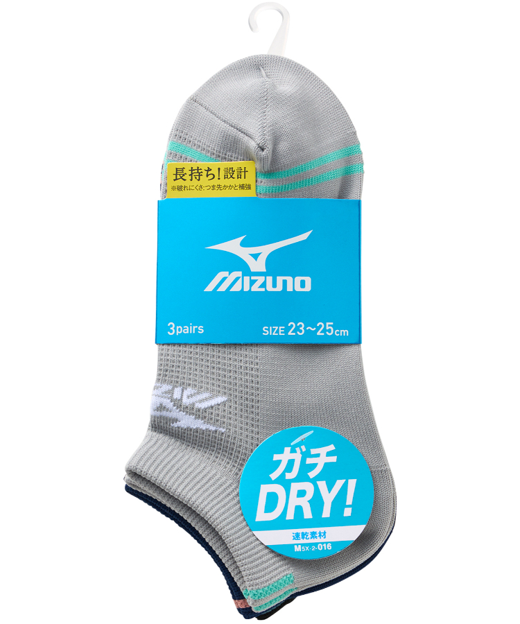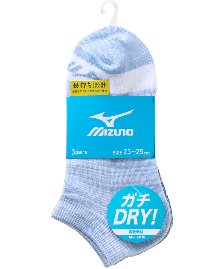 【3足組】MIZUNO デイリー ガチDRY レディース 6.5cm丈 甲メッシュ 2本ライン デニム引揃 ミズノ