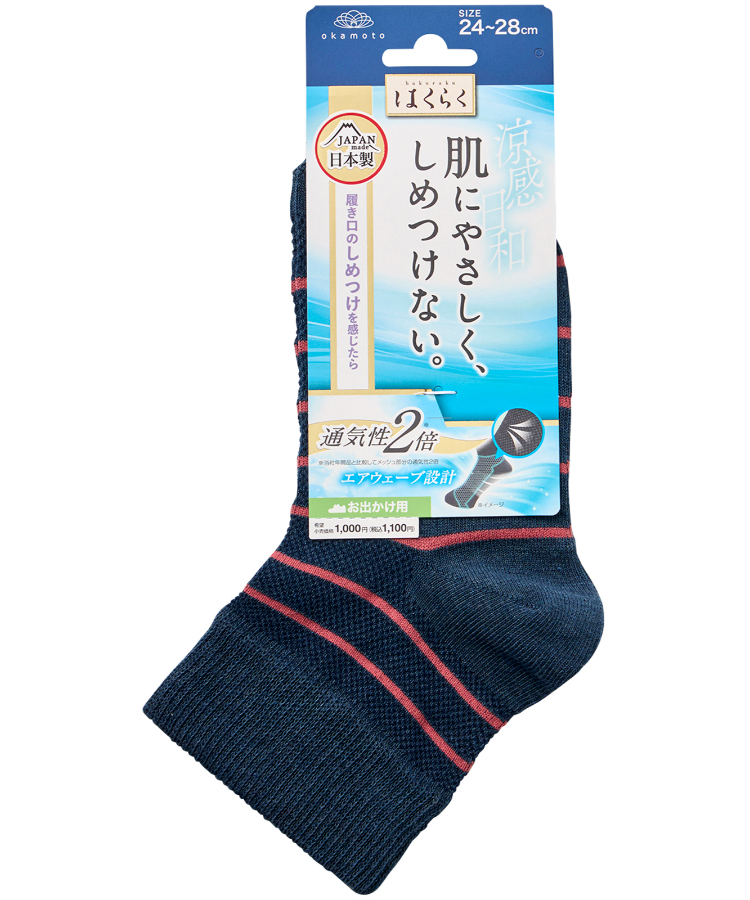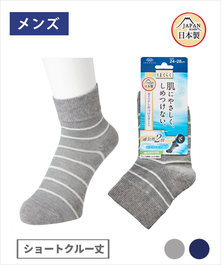 | 商品名 | はくらく しめつけない メンズ ショートクルー丈 のびーる ボーター柄 お出かけ用(涼感) |