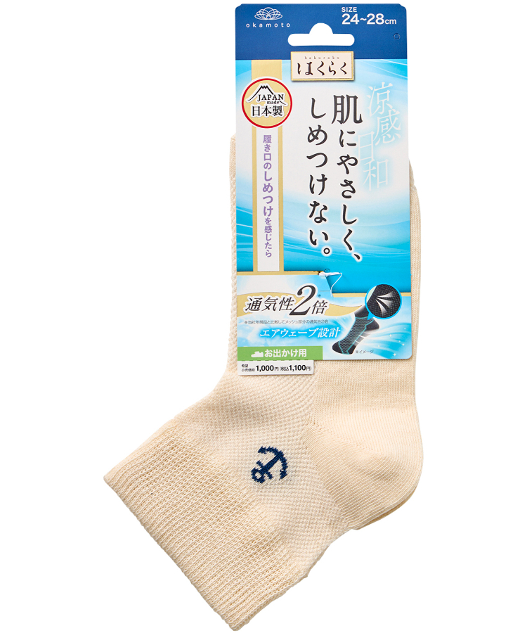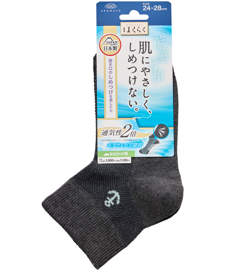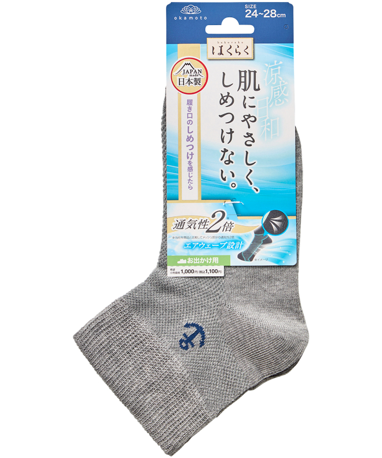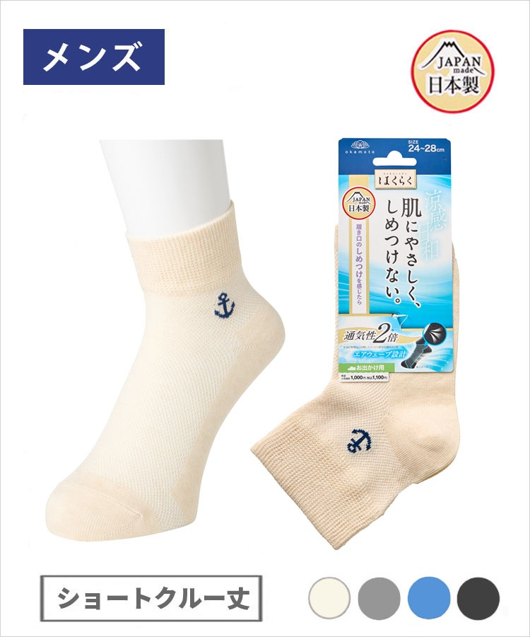 | 商品名 | はくらく しめつけない メンズ ショートクルー丈 のびーる 碇ワンポイント お出かけ用(涼感) |