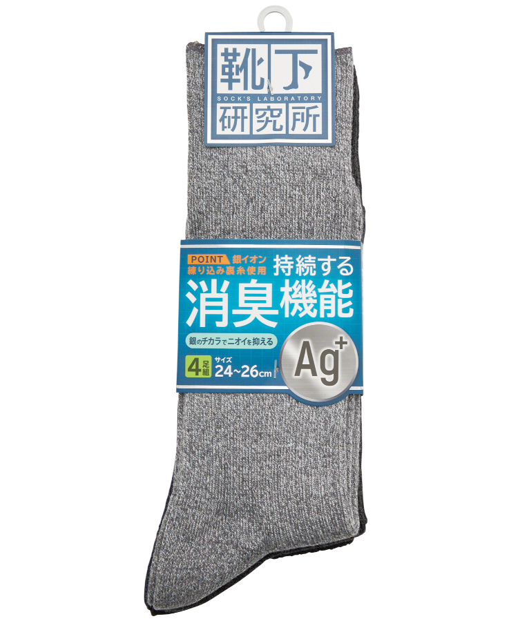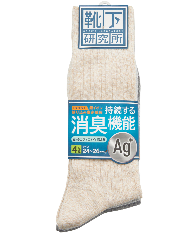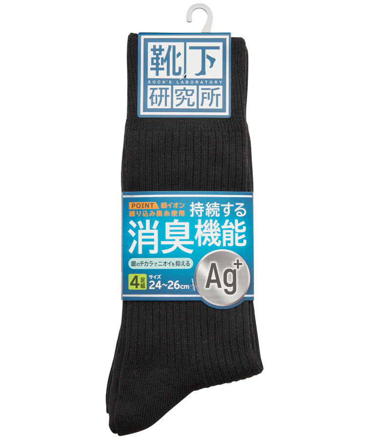 【4足組】靴下研究所 メンズ クルー丈 綿 Ag リブ