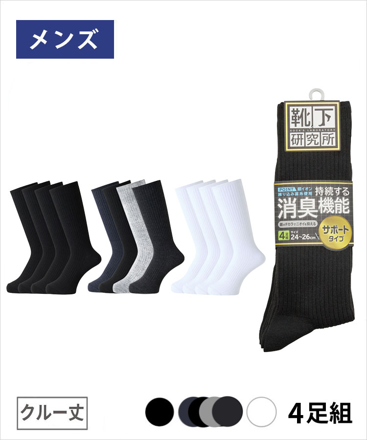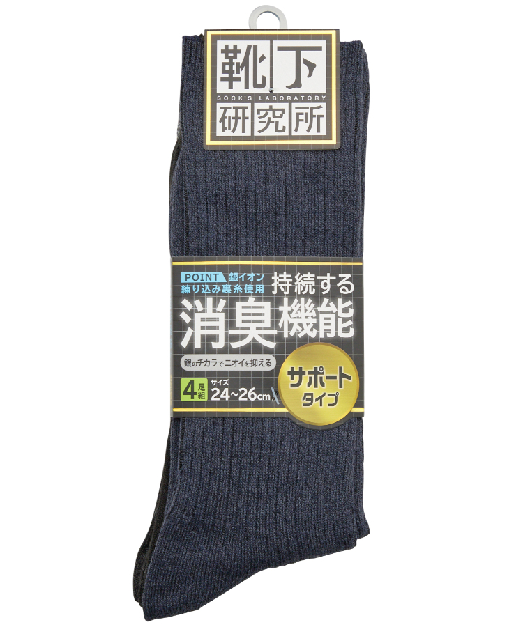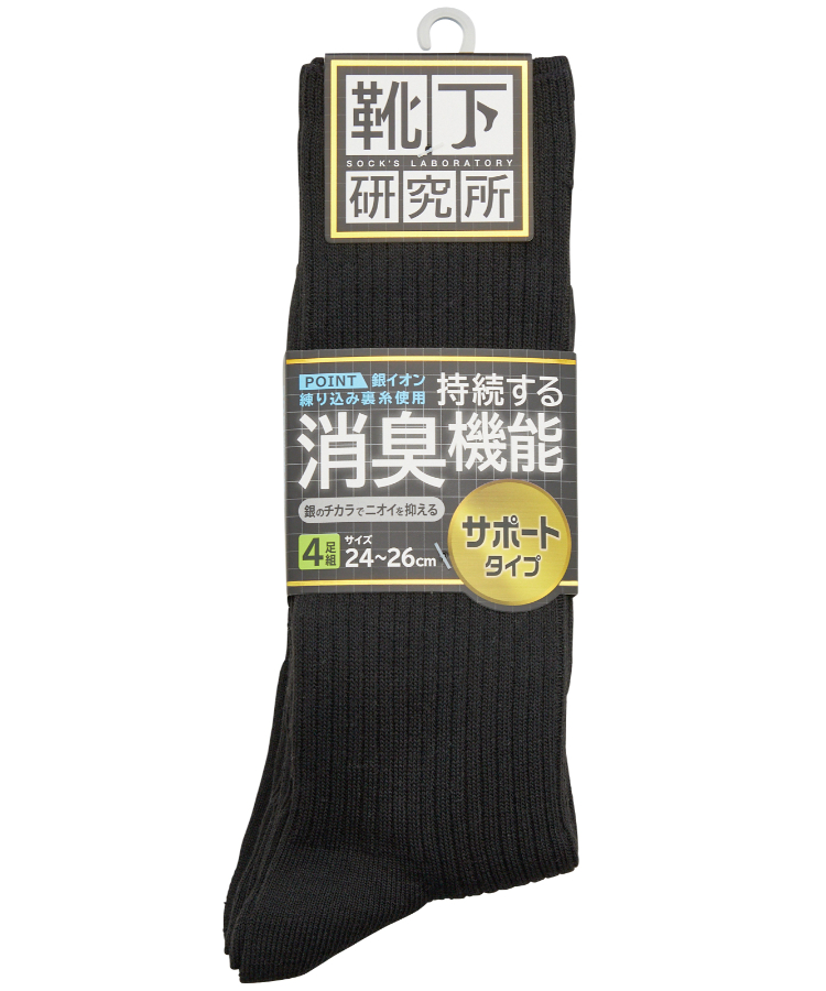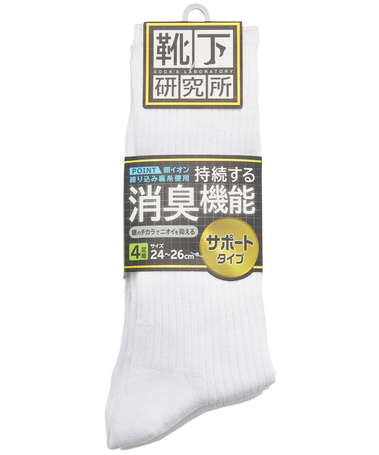 【4足組】靴下研究所 メンズ クルー丈 サポート 綿 Ag リブ