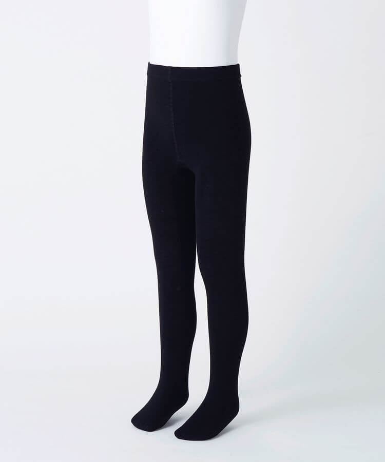 くろぱん キッズ タイツ 綿レーヨン 裏起毛 無地 丸編み