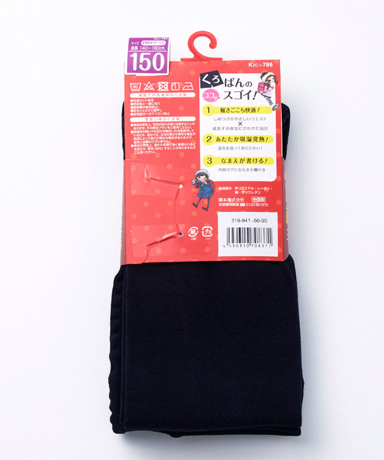 | 商品名 | くろぱん キッズ タイツ 綿レーヨン 裏起毛 無地 丸編み |
