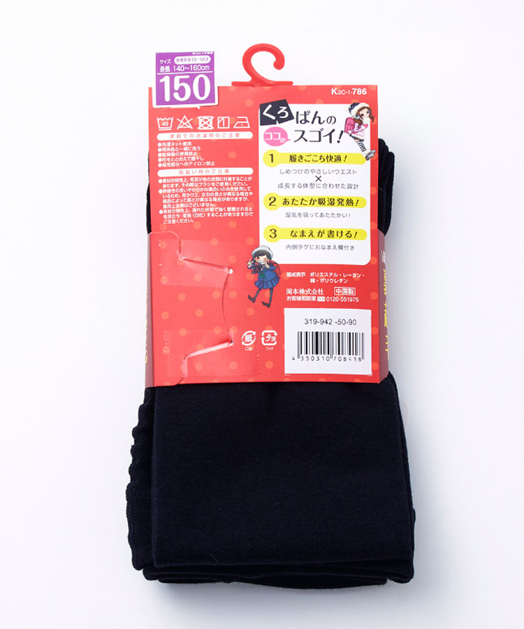 学校のマストアイテム、シンプルなオーバーパンツ「くろぱん」。スカートの下にはいて、防犯や冷え対策には必需品。お子様の成長に合わせたオリジナル体型設計により、おなかもおしりもぴったり、最高のはき心地をご提供します。