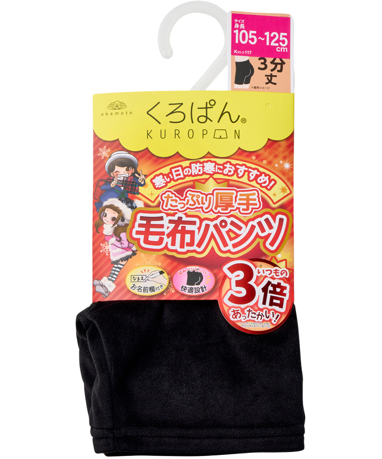 | 商品名 | くろぱん 毛布パンツ キッズ 3分丈 保温 両面起毛 |