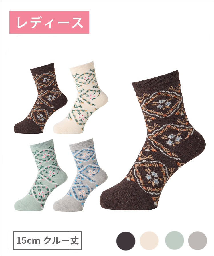 | 商品名 | moisok レディース 15cmクルー丈 アンゴラ ダイヤ花柄 |