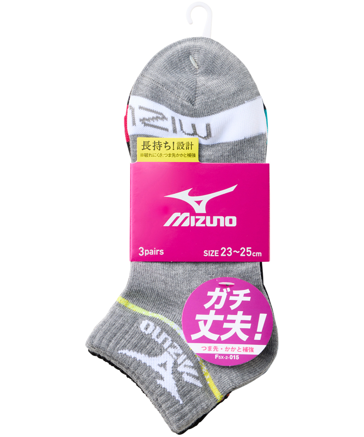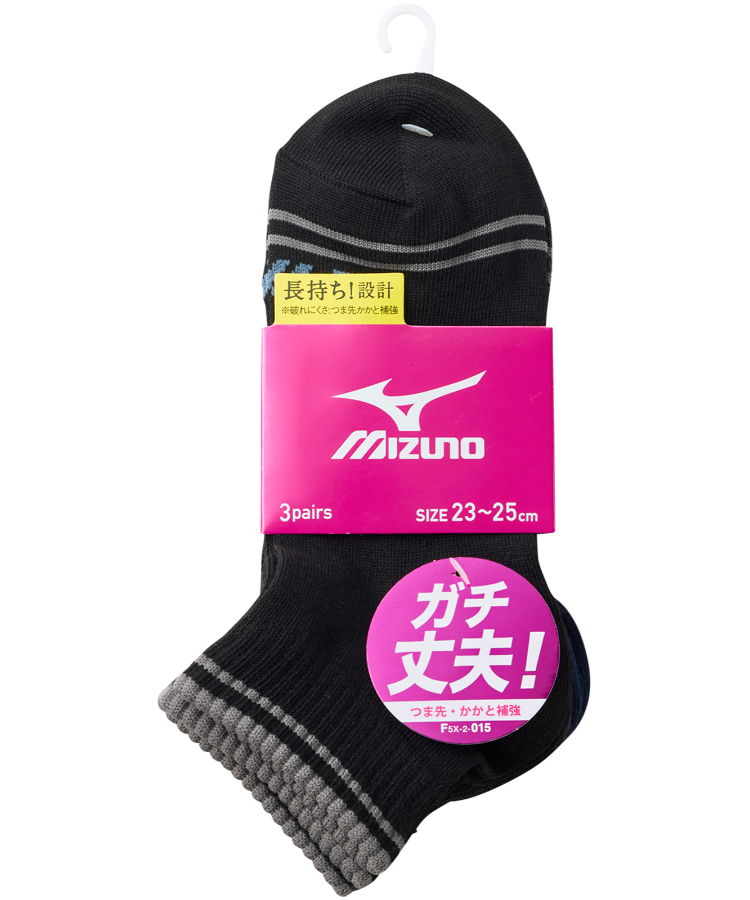 | 商品名 | 【3足組】MIZUNO デイリー ガチ丈夫 レディース 8.5cm丈 爪先ロゴ 2本ライン |