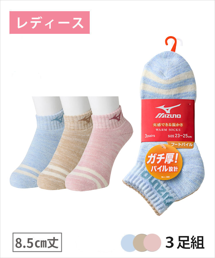 【3足組】MIZUNO デイリー ガチ厚 レディース 8.5cm丈 フートパイル アソート ミズノ