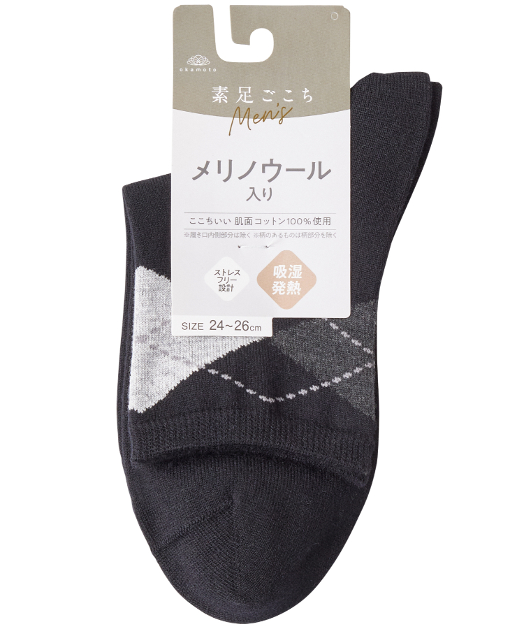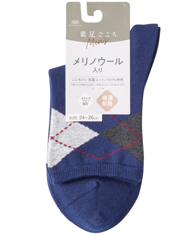 | 商品名 | 素足ごこち 秋冬 メンズ 15cm丈 メリノウール入り綿 吸湿発熱 アーガイル |