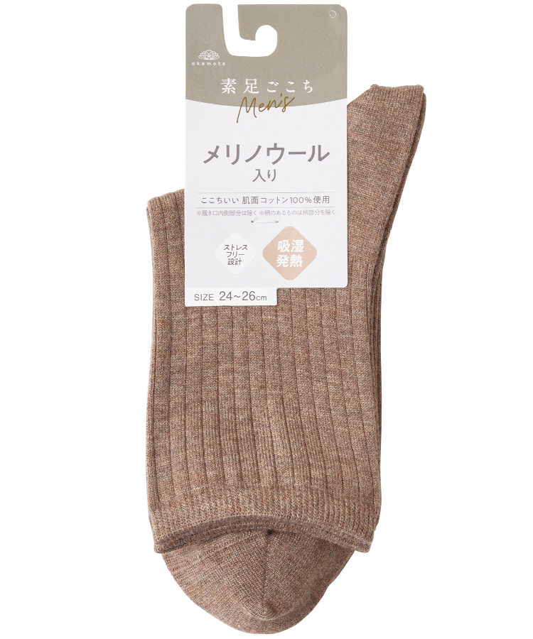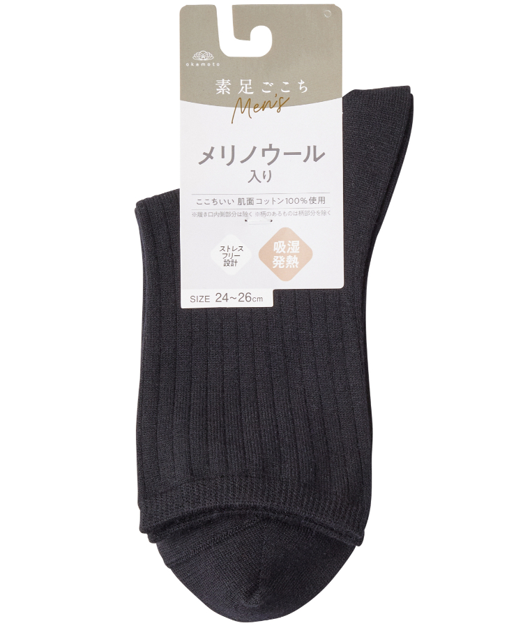 | 商品名 | 素足ごこち 秋冬 メンズ 18cm丈 メリノウール入り綿 吸湿発熱 5×1針抜 |