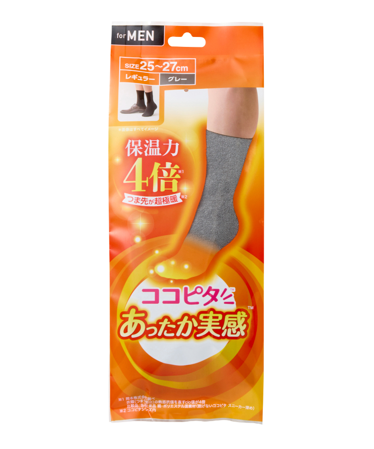 | 商品名 | 【2足組】ココピタ あったか実感 メンズ クルー丈 無地 |