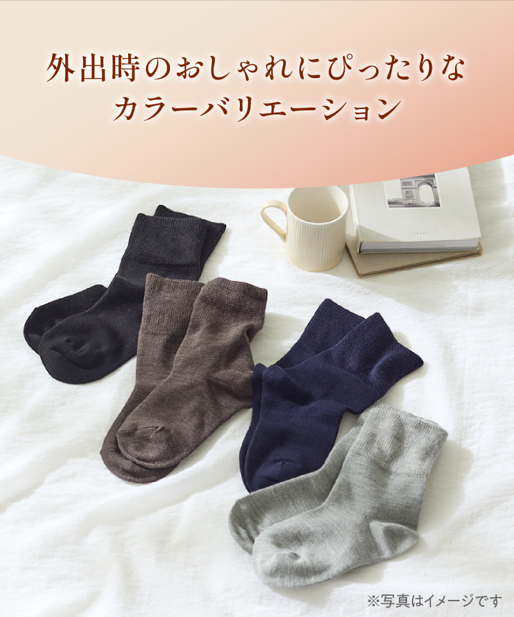 保温性があり柔らかいアクリルと吸湿発熱性のあるウールを使用しているため、やさしい肌ざわりとあたたかさを実感いただけます。