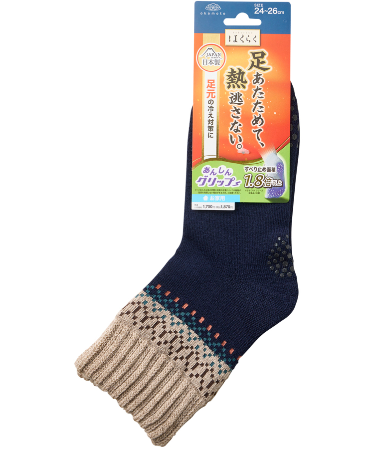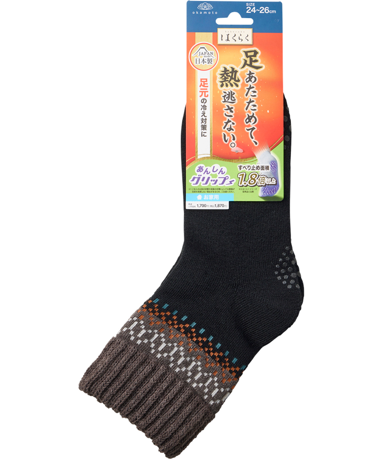 | 商品名 | はくらく あったか メンズ ショートクルー丈 のびーる 厚地 安心グリップ 足首雪柄 お家用(秋冬) |