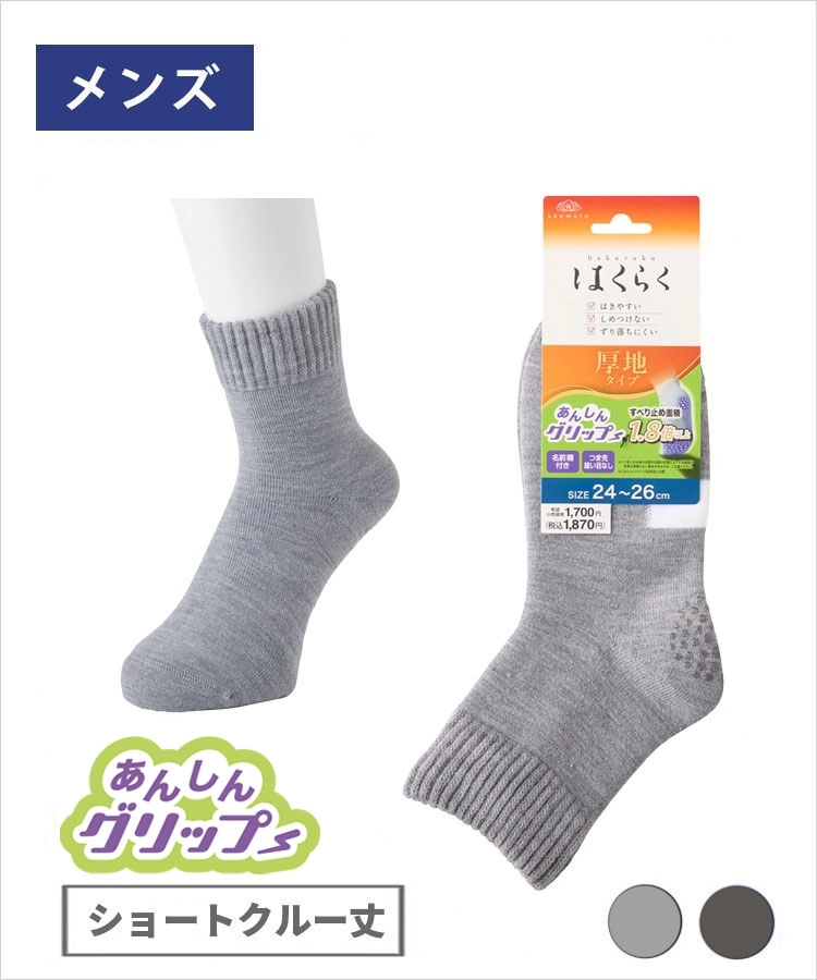 | 商品名 | はくらく メンズ ショートクルー丈 のびーる 安心グリップ 無地 厚地(介護) |
