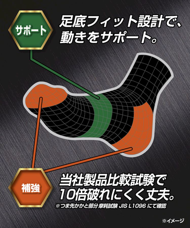 現場作業・スポーツ・日常使いにも。幅広いシーンで使える多機能靴下です。