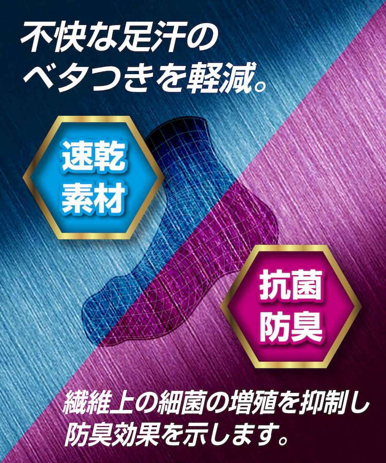 | 機能・特長 | 速乾 抗菌防臭 破れにくい 動きをサポート |