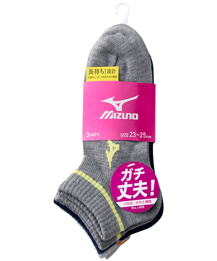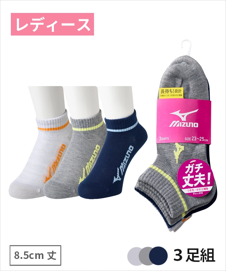 | 商品名 | 【3足組】MIZUNO デイリー ガチ丈夫 レディース 8.5cm丈 甲メッシュ 引揃口ゴムグラデーション ミズノ |