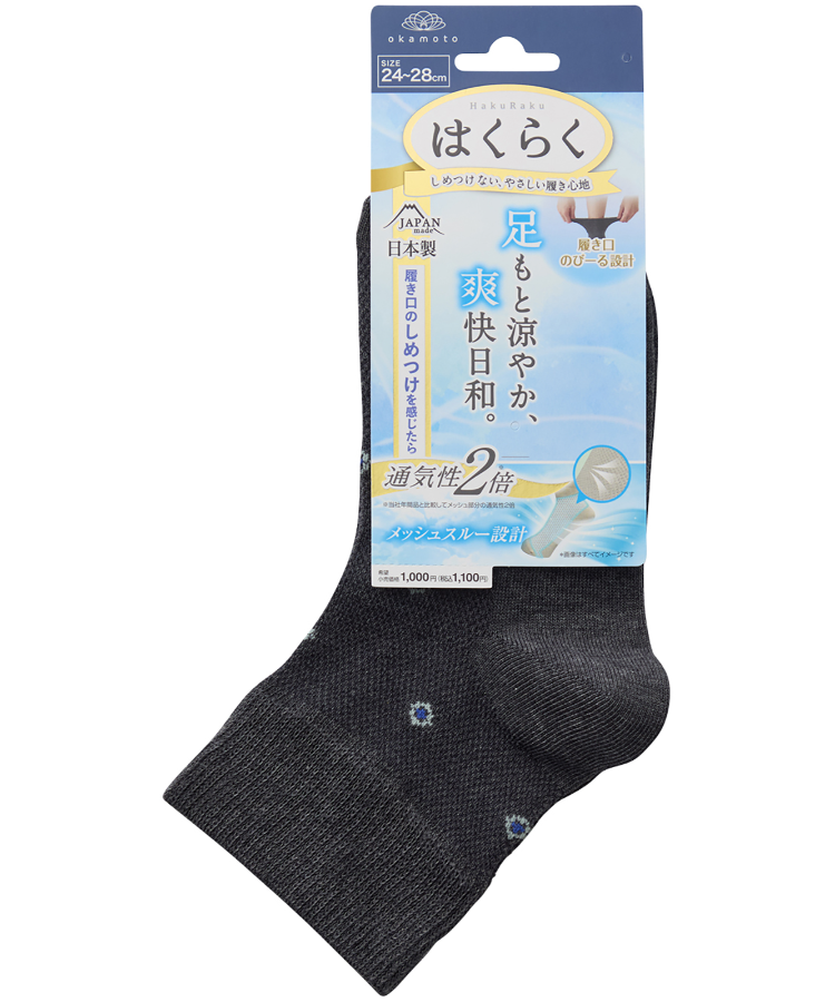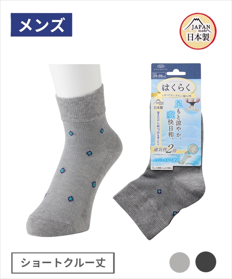 | 商品名 | はくらく メンズ ショートクルー丈 のびーる 幾何学ドット お出かけ用(涼感) |