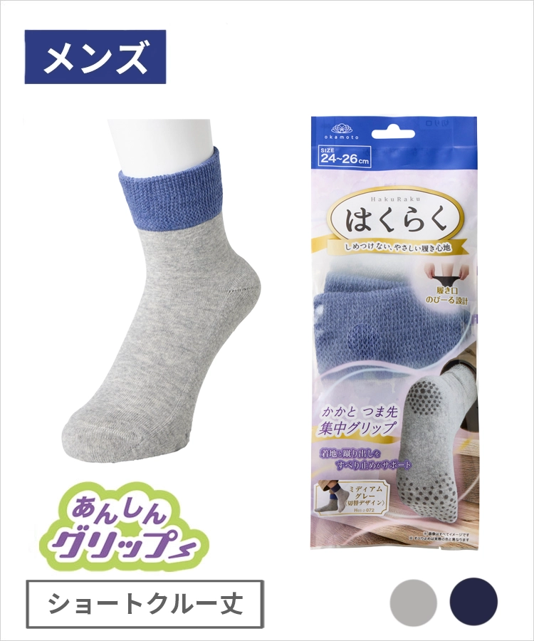 | 商品名 | はくらく メンズ ショートクルー丈 のびーる あんしんグリップ 滑り止め付 パイル TOP切替 お出かけ用 |