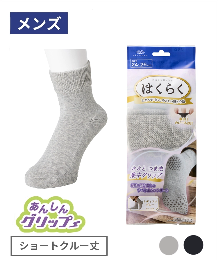 | 商品名 | はくらく メンズ ショートクルー丈 のびーる あんしんグリップ 滑り止め付 パイル 無地 お出かけ用 |