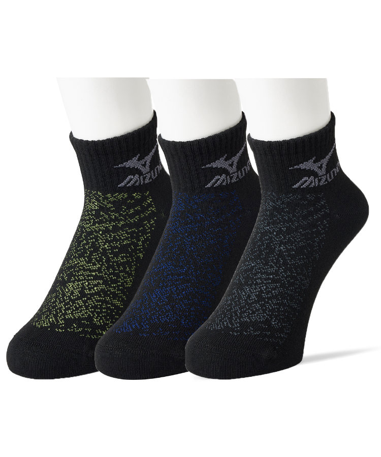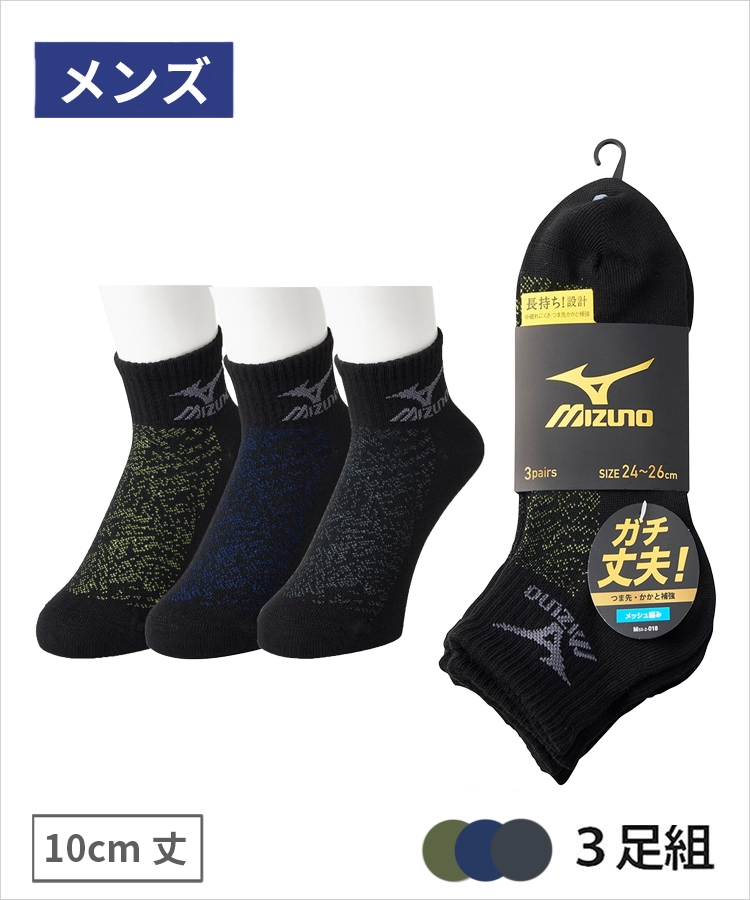 【3足組】MIZUNO デイリー ガチ丈夫 メンズ 10cm丈 甲メッシュ 裏出し ブラック ミズノ
